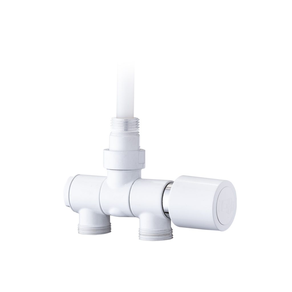 Valvola termostatizzabile mono-bitubo con regolatore incorporato con attacchi per il tubo orientabili, per ricevere tubazioni dal muro e dal pavimento; si può installare alla destra o sinistra del radiatore, indifferentemente. Detentore di regolazione incorporato. Distanza fra le uscite 50 mm. Scegliere comandi termostatici ed elettrotermici con connessione 28x1,5. Per installazione comandi elettrotermici usare ghiera di adattamento cod. 22023AY20. Finitura bianca.