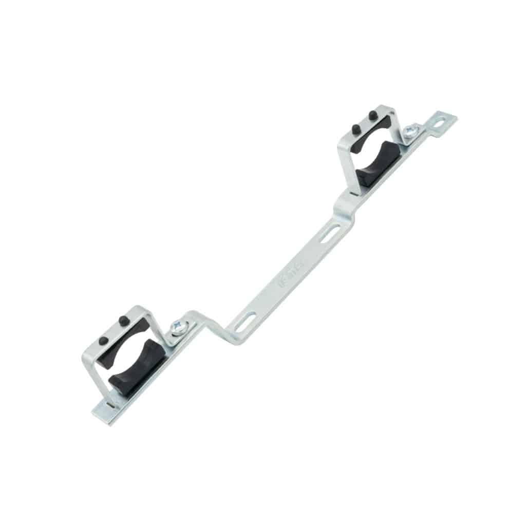 Detentore doppia squadra per tubo ferro. Corredato di bocchettone antisgocciolamento. Versione Destra o Sinistra.