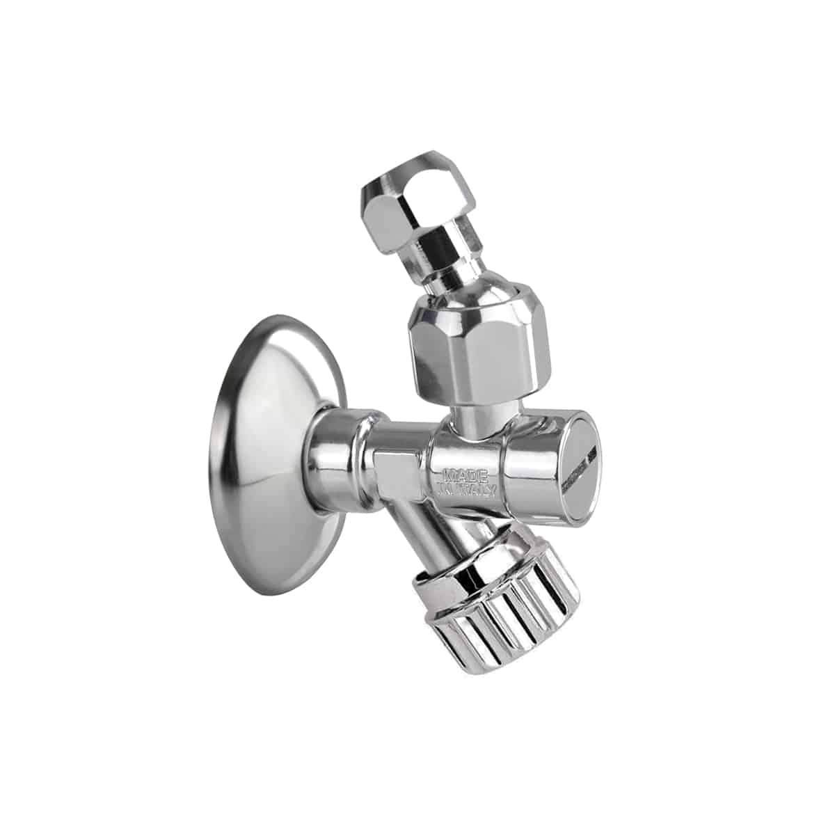 Кран приладовий для встановлення під умивальник. Різьба внутрішня кран-букса, фільтр 1/2", підключення до гнучкого підведення. Пласке з'єднання . Постачається у комплекті з хромованою декоративною розеткою.