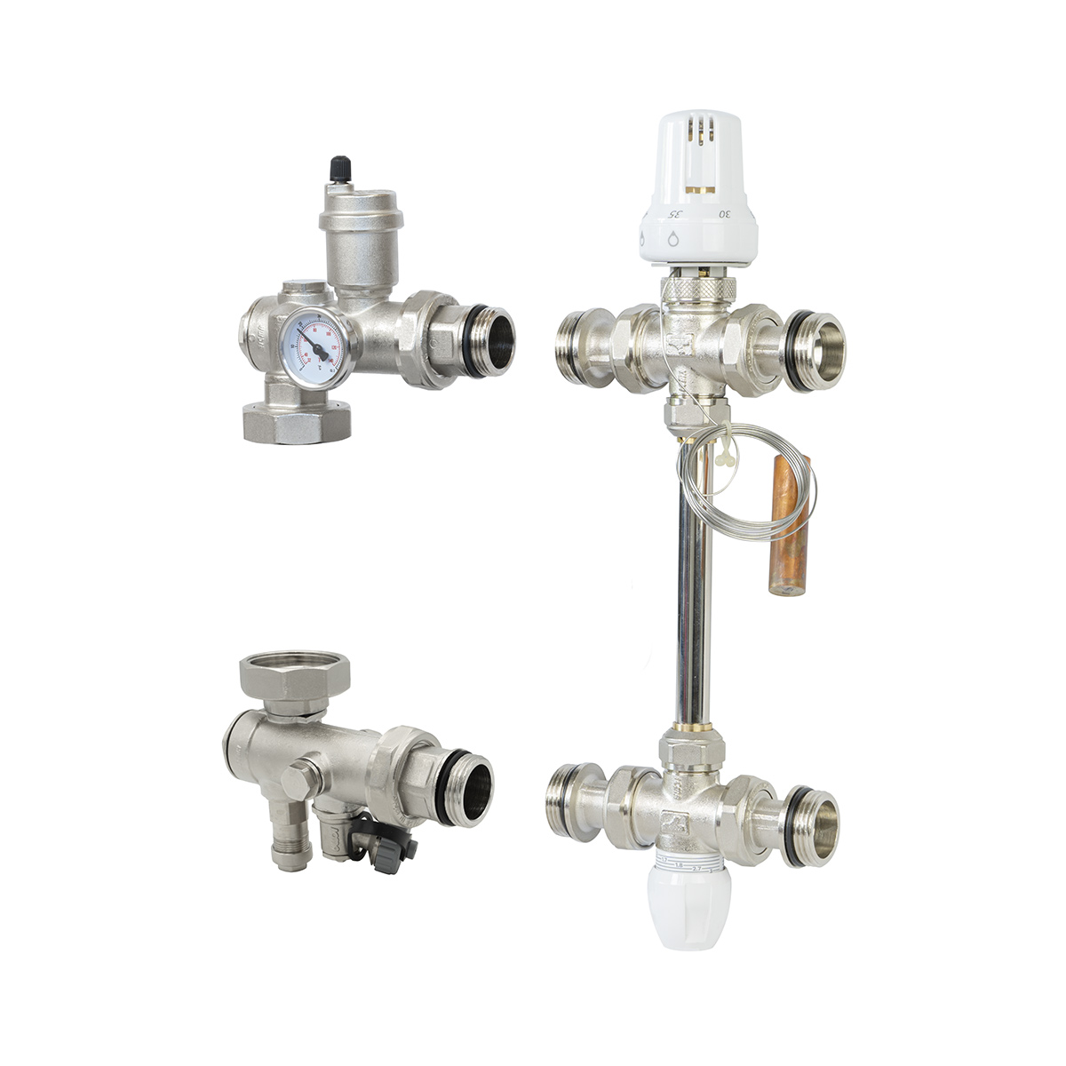 M055 | Gruppo di miscelazione a punto fisso a tre vie completo di termostato di sicurezza e testa termostatica