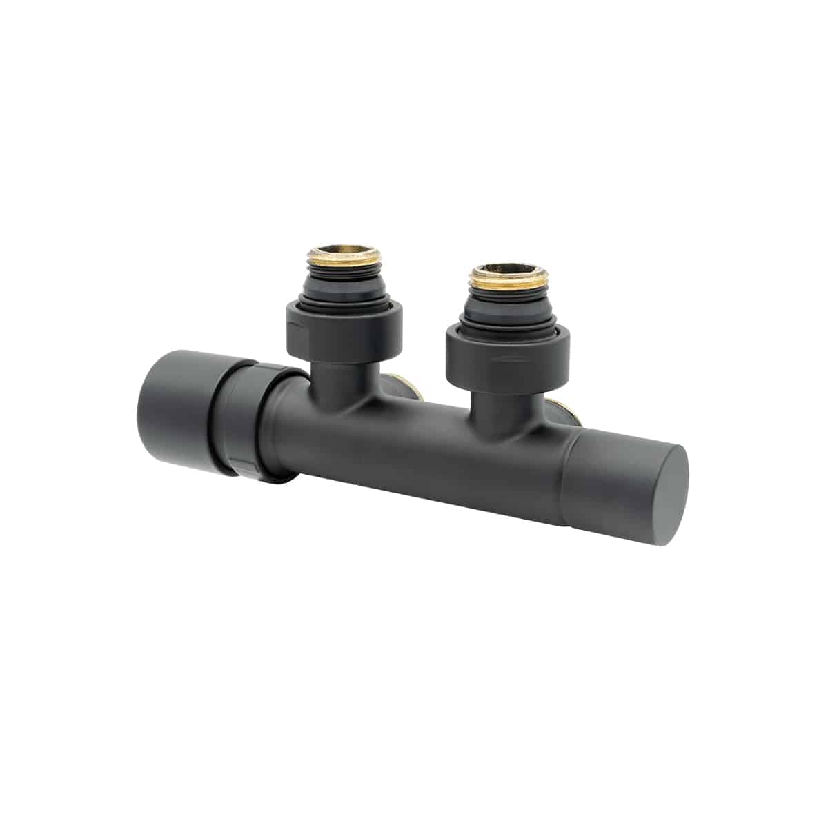 1138 | Valvola termostatica M30x1,5, a squadra mono-bitubo a doppio attacco – Finitura nero opaco